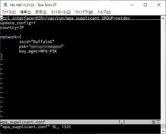 下はvimで開いたwpa_supplicant.confです。pskキーは都合ぼかしています。