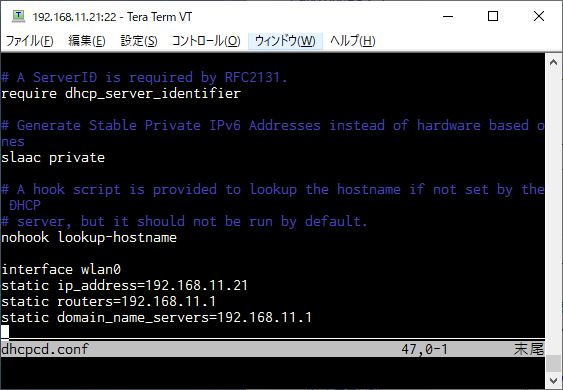 static ip_address=192.168.11.11←付与したいipを書きます。