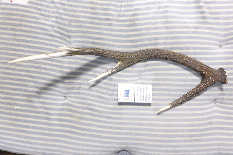 総会前に漁協の理事で猟友会の知り合いの先輩に、鹿の角でナイフのハンドルを自作してみたのですが、角余ってませんか?と聞いたところ、車にあるから持ってけー!ってことでいただいてきました。